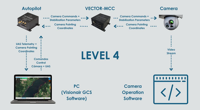 With the VECTOR-MCC, clients can develop their own drivers to enable communication between the autopilot and the camera, achieving various levels of integration. Additionally, customers will be able to implement camera control logic to manage the camera, including adjustments to aim, zoom, and focus.