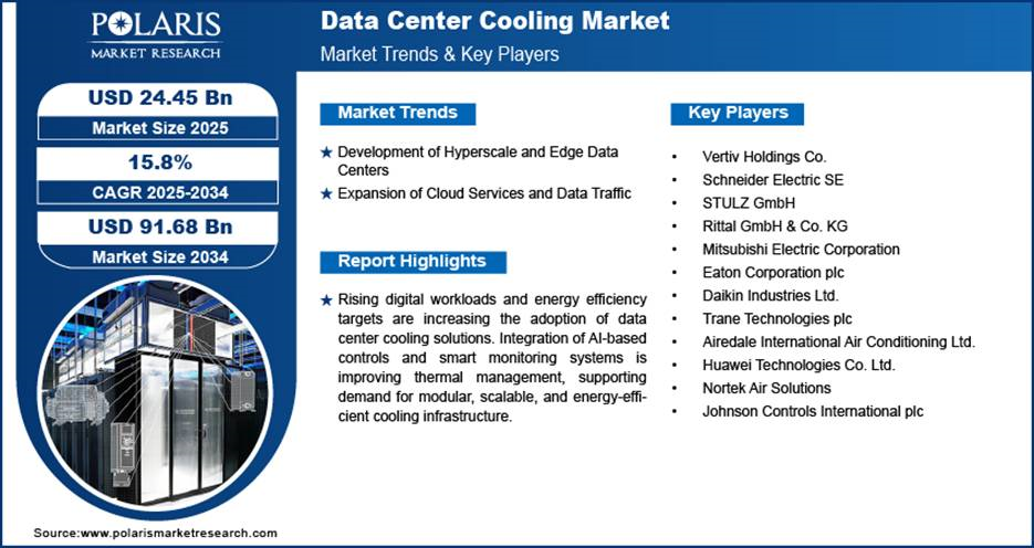 The data center cooling market is rapidly evolving in response to rising digital demands, energy efficiency goals, and the need for reliable performance. With the growing complexity of IT workloads and the expansion of digital infrastructure, efficient cooling has become a critical component in sustaining data center operations. As innovations like liquid cooling, AI-driven systems, and eco-friendly technologies gain traction, the market is set to experience strong growth in the coming years, driven by the dual need for performance and sustainability.
