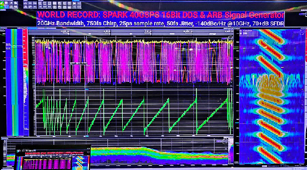 Aaronia already set a new world speed record at EMV 2023 with a sweep speed of 3 THz/s, and this year the 40 GSPS SPARK signal generator is breaking all records at AoC in Maryland. With 2 x 20 GHz bandwidth, the generator achieves a chirp speed of 750 ps (picoseconds). “This allows the 40 GSPS SPARK to change the frequency of a chirp signal with a temporal resolution of 750 picoseconds, resulting in very fine and smooth chirps even at extremely fast sweeps,” says Peter May. In addition, the jitter, i.e., the temporal uncertainty of a signal, is only 50 fs (femtoseconds). This makes the device ideal for use in ultra-wideband or mmWave radar, for example. “Considering that high-quality RF generators typically achieve values of <100 fs, the 50 fs of the 40GSPS SPARK Signal Generator sets a new benchmark,” concludes May..